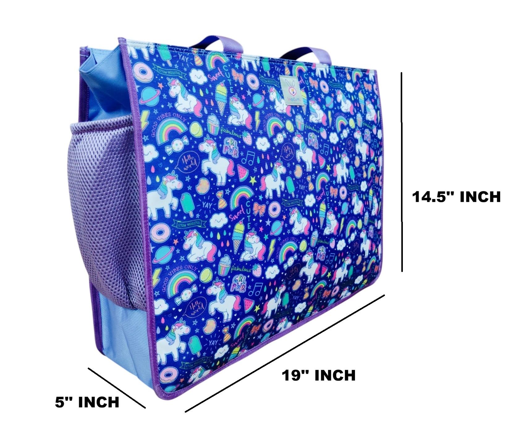 Spacious and sturdy, this art bag easily fits A3 size drawing books and pads. Thoughtfully designed with back pockets to hold your color palette and color box, and a wide zippered main compartment with ample space for all your art essentials. Perfect for young artists on the go!