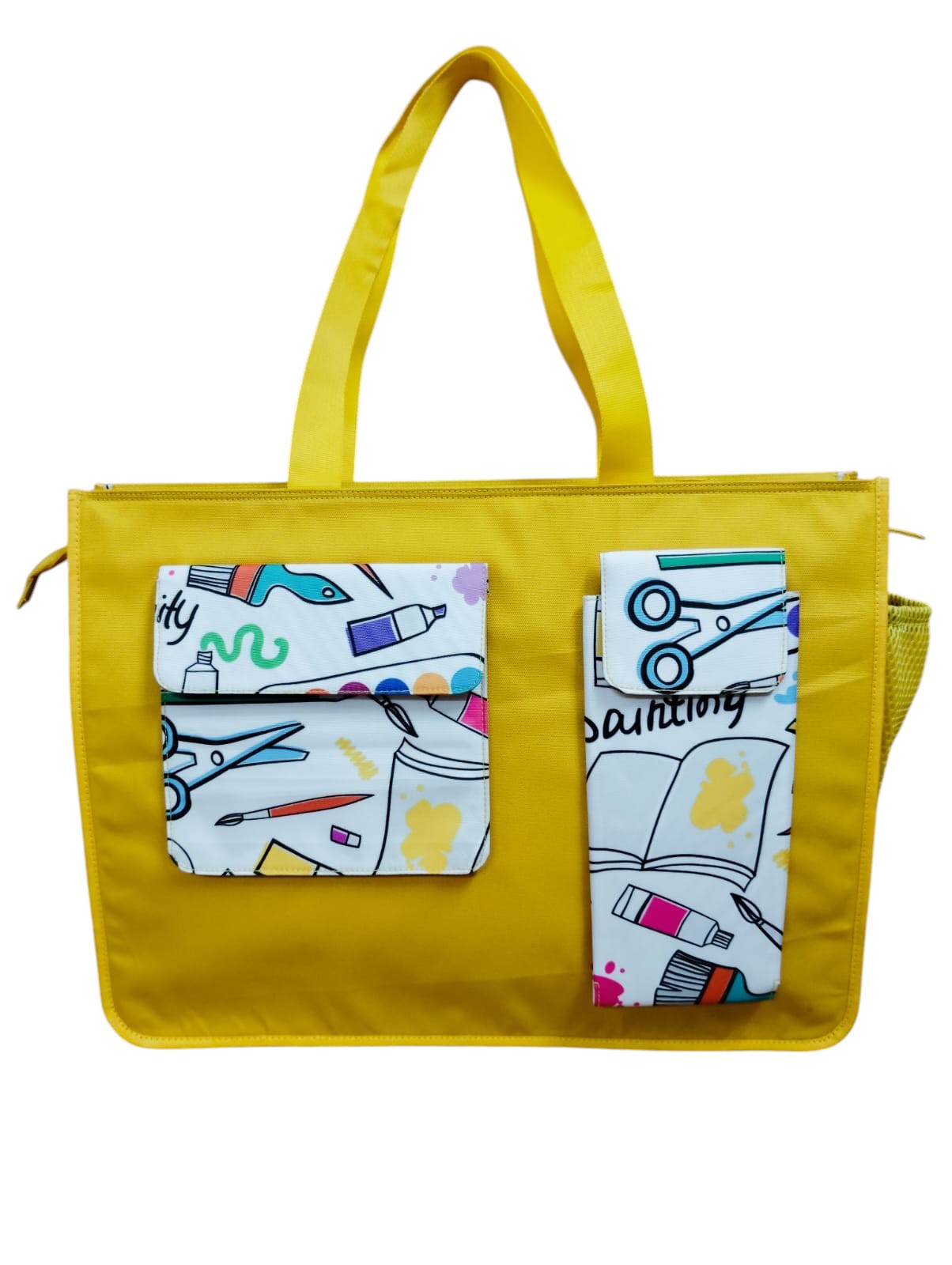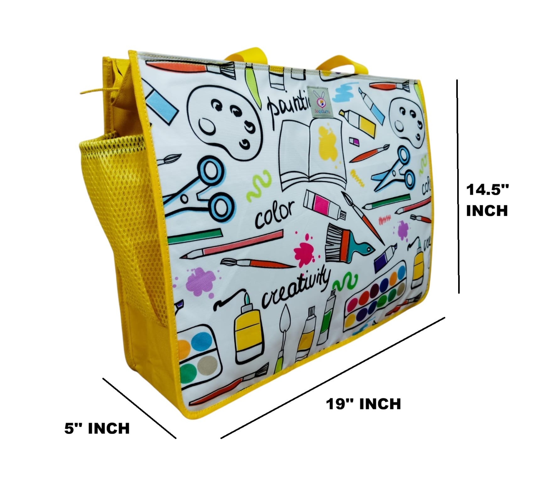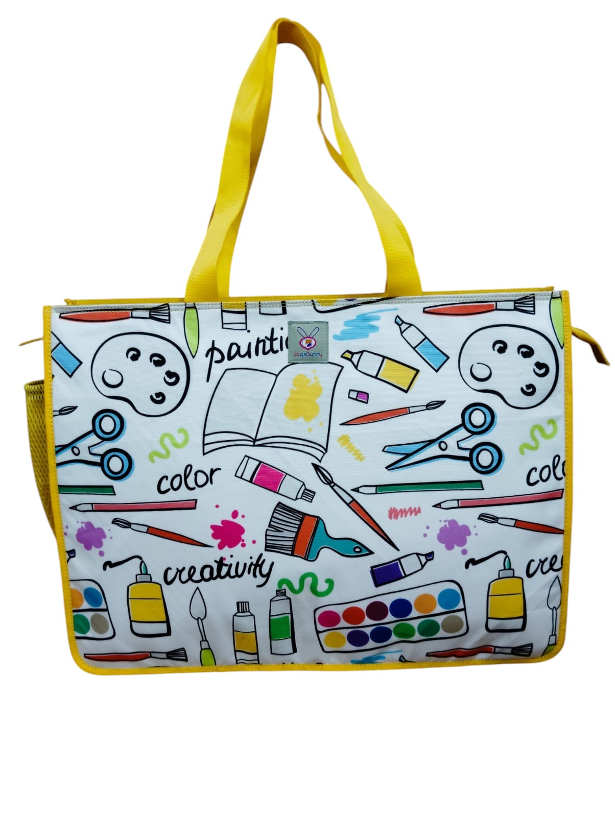 Spacious and sturdy, this art bag easily fits A3 size drawing books and pads. Thoughtfully designed with back pockets to hold your color palette and color box, and a wide zippered main compartment with ample space for all your art essentials. Perfect for young artists on the go!