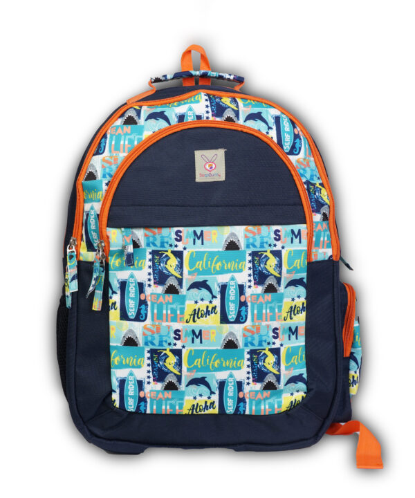This vibrant and functional backpack features 4 spacious front zip compartments, 1 side bottle holder, and 1 side pencil pouch for easy organization. The interior is large and roomy, perfect for school or travel essentials. Made with water-resistant fabric, it’s lightweight and washable in cold water, combining durability with style! Bag is Ideal for Grade 8 to Grade 10 students
