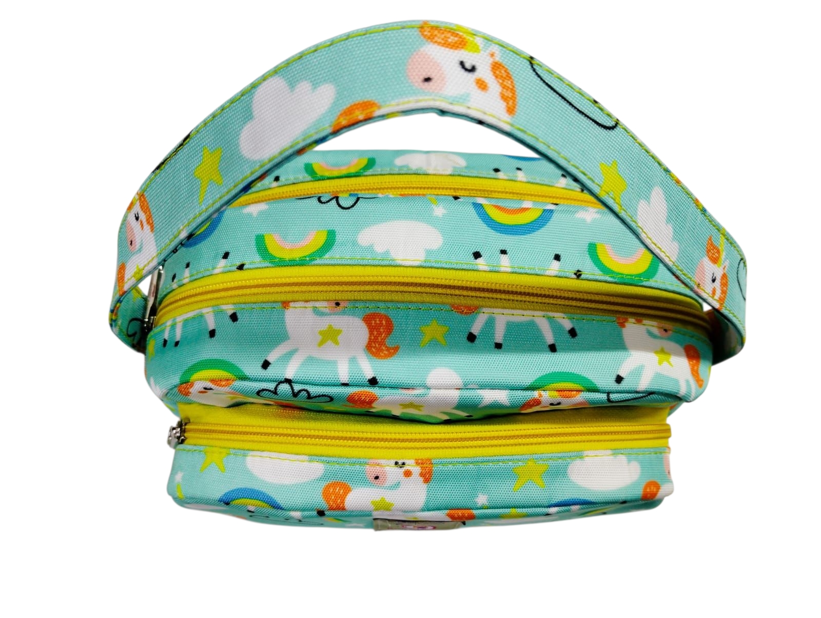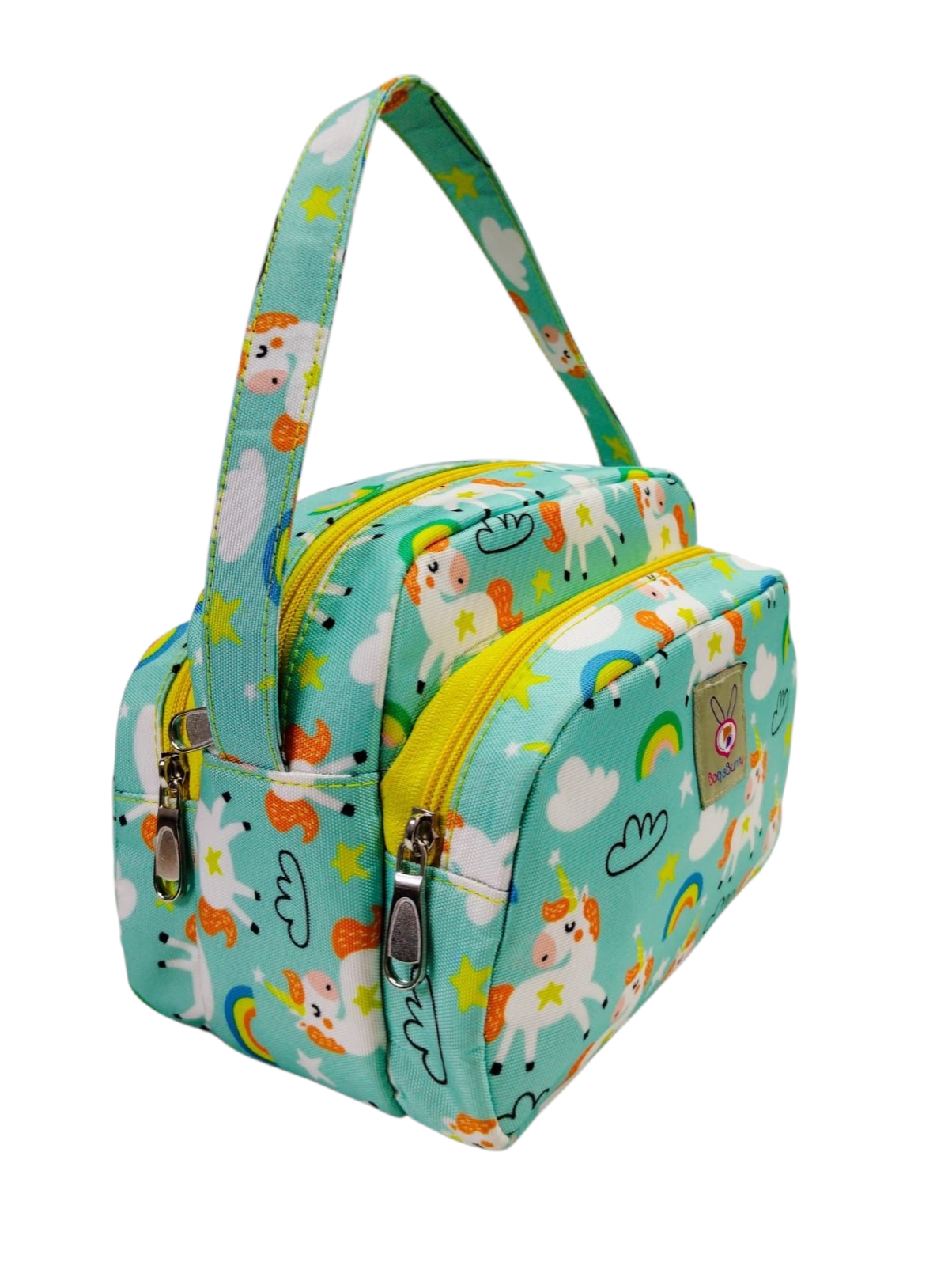 Stylish, compact, and versatile, the Bimble is your go-to organizer for every occasion. Featuring 3 zipper compartments and a sturdy handle for easy carrying, it keeps your essentials neatly arranged. Perfect for tea parties, casual outings, travel, or home organization, it can even be carried like a clutch bag. Available in beautiful colors to match your style.