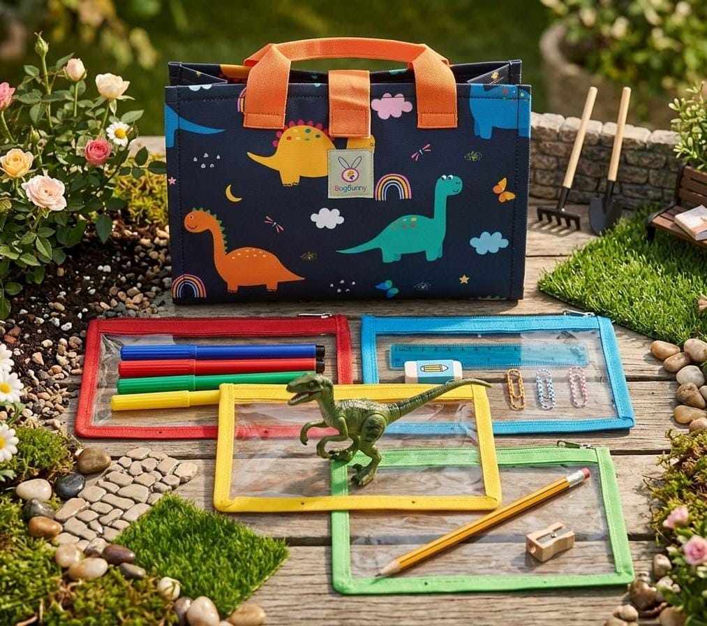 Keep little hands engaged on the go! This vibrant Busy Bag comes with 4 transparent, zippered pouches—perfect for storing small toys, puzzles, stationery, accessories, or DIY games. With openable binder rings, moms can easily swap contents and create custom play kits. Ideal for travel, outings, or dinner time entertainment.