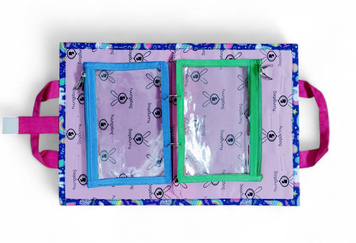 Keep little hands engaged on the go! This vibrant Busy Bag comes with 4 transparent, zippered pouches—perfect for storing small toys, puzzles, stationery, accessories, or DIY games. With openable binder rings, moms can easily swap contents and create custom play kits. Ideal for travel, outings, or dinner time entertainment.