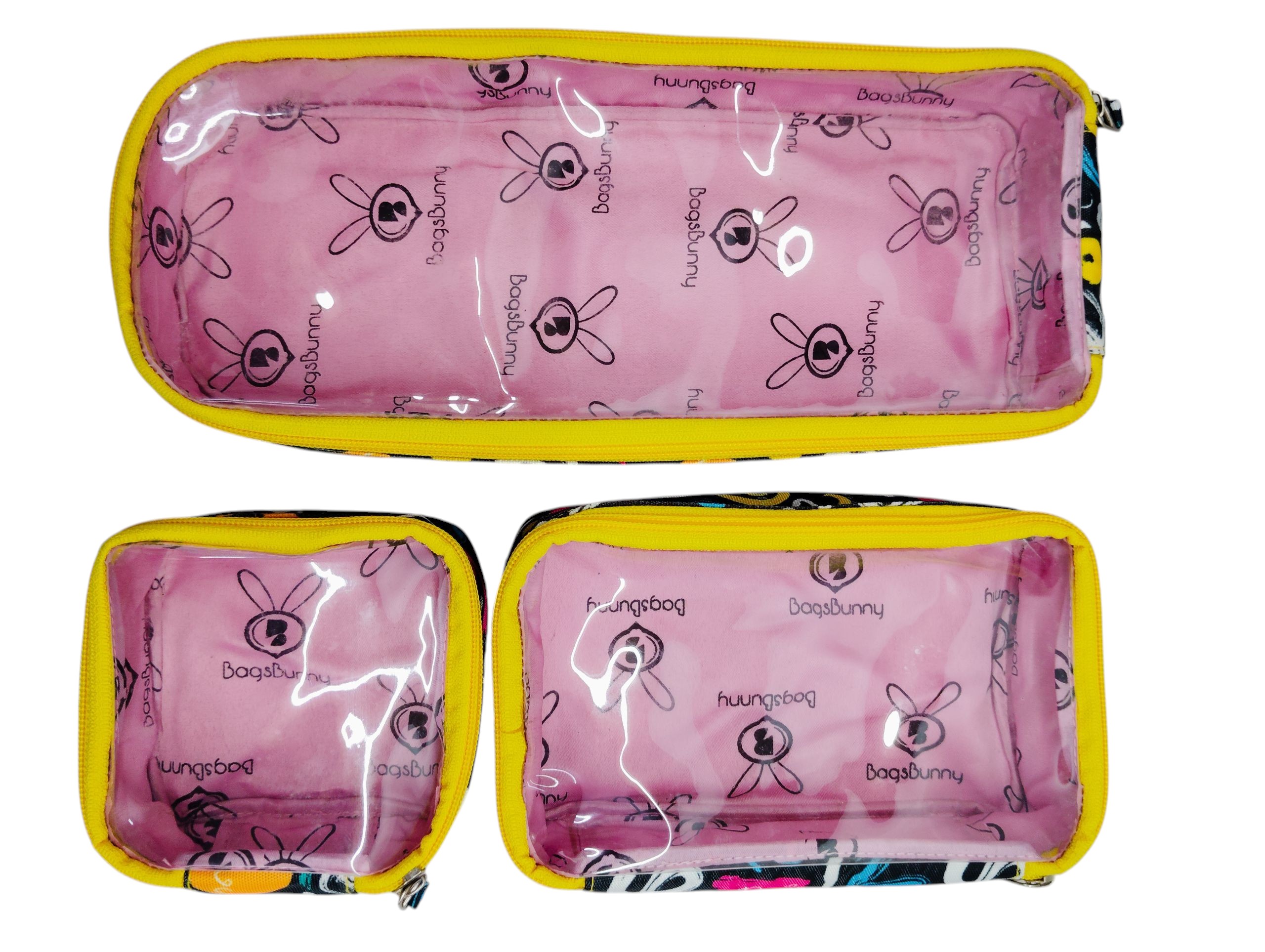 Pack of 3 Drawer Organizers – one side transparent for easy visibility and the other side with cute printed designs. Perfect for neatly storing accessories,stationery or any essentials in drawers or shelves.