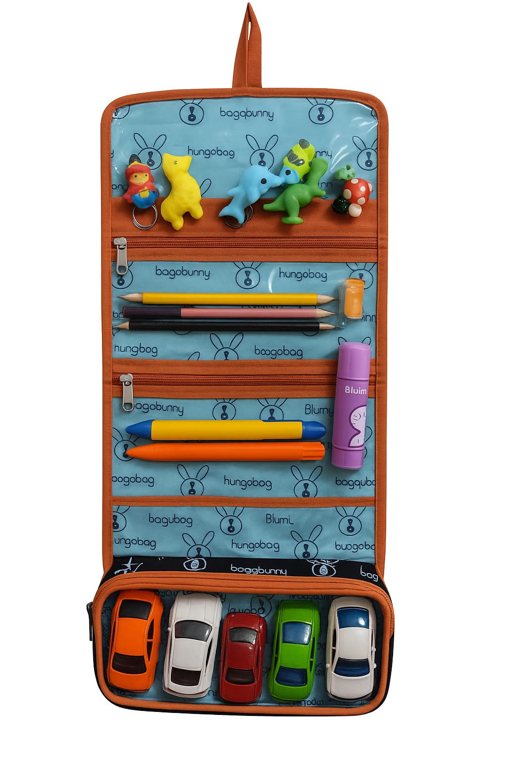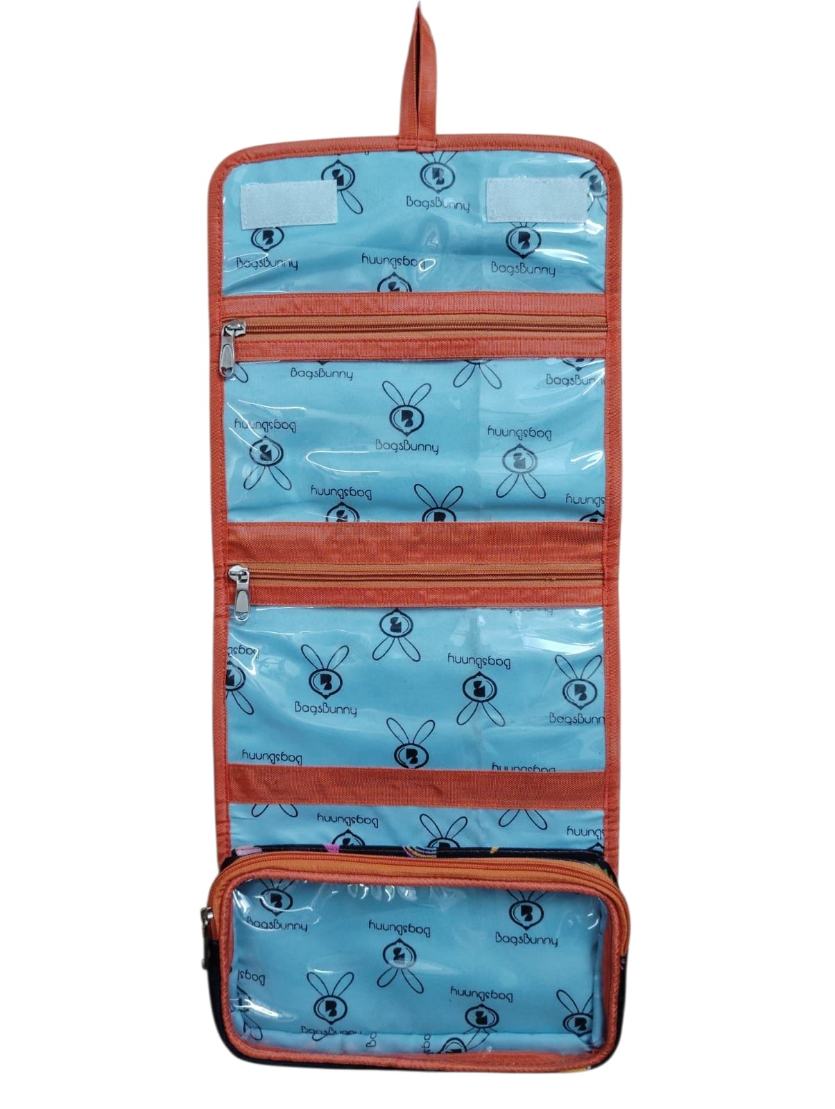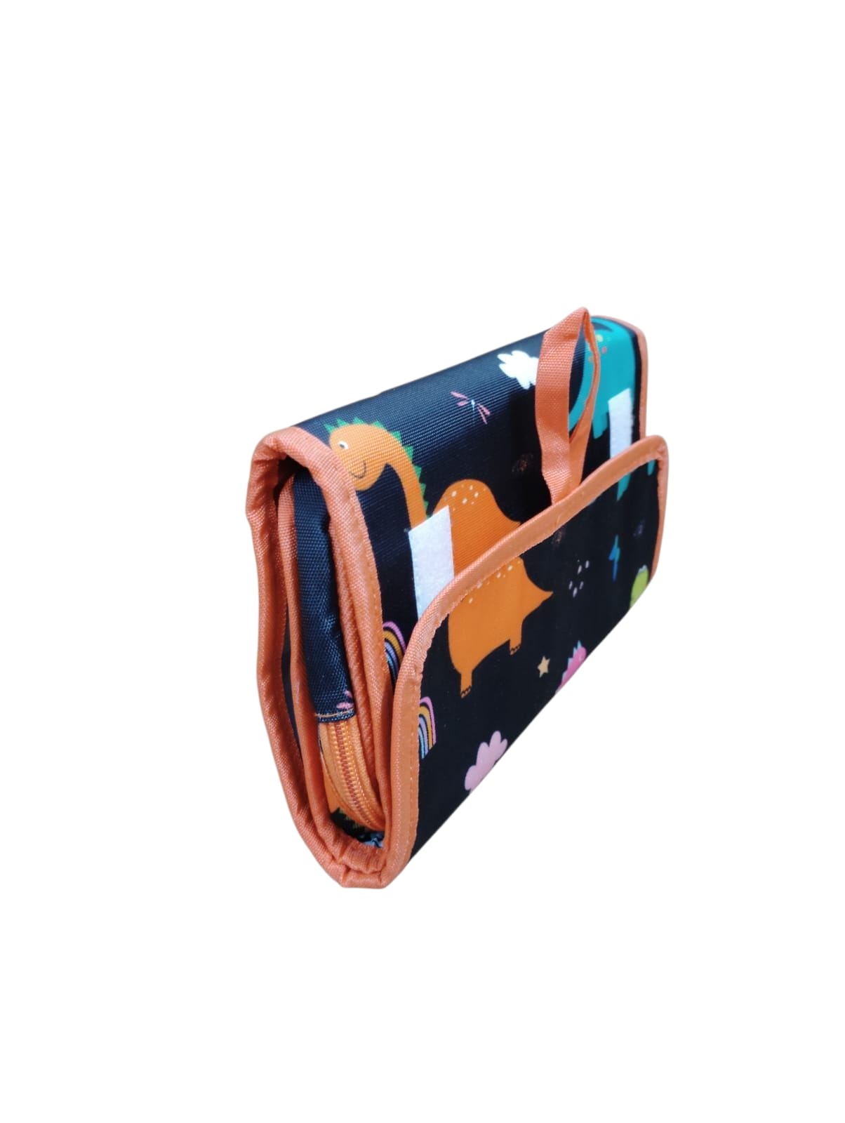 Cute and compact foldable toiletry bag with a fun prints, water-resistant fabric, secure Velcro closure, and easy-to-carry — perfect for kids’ travel or daily use.