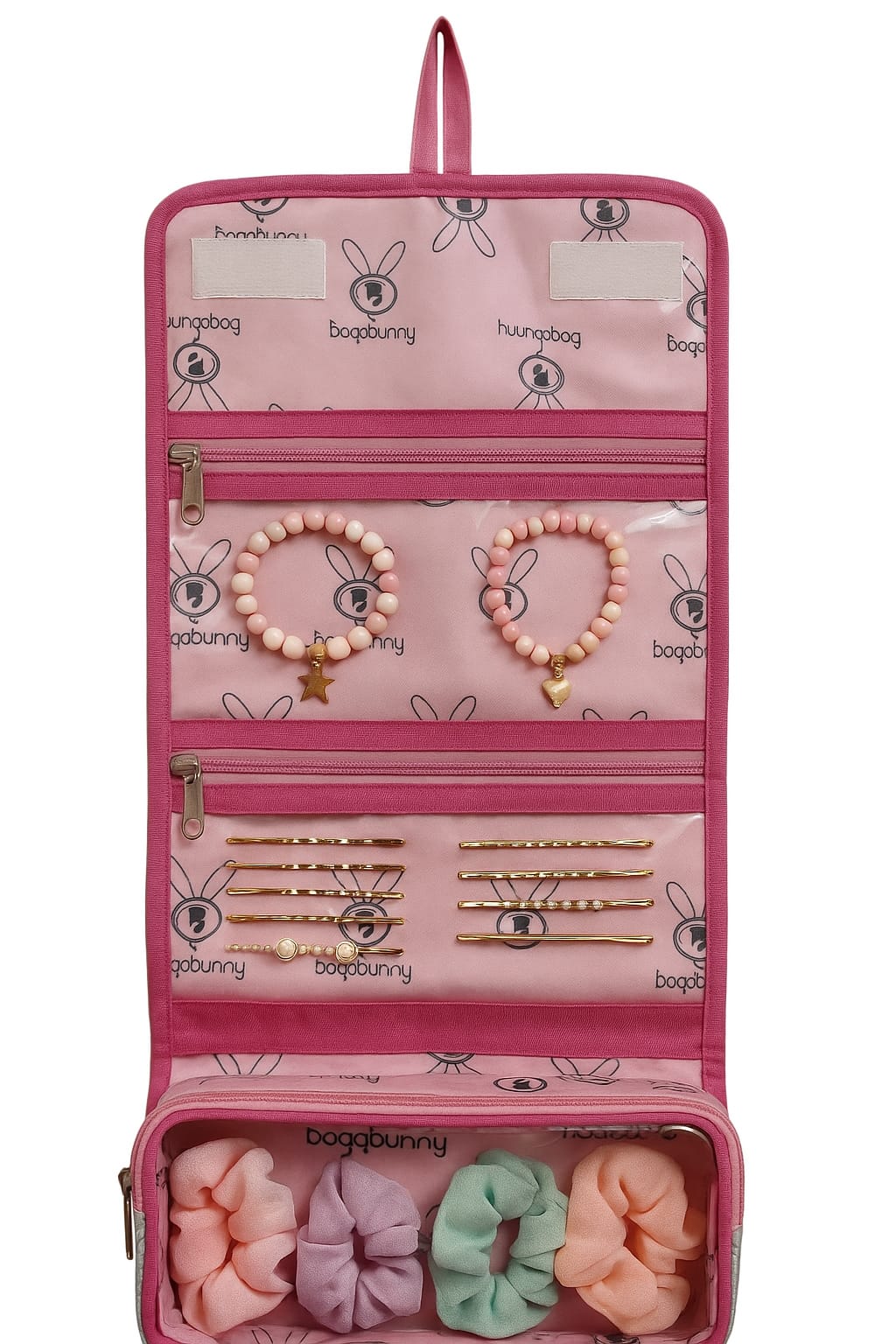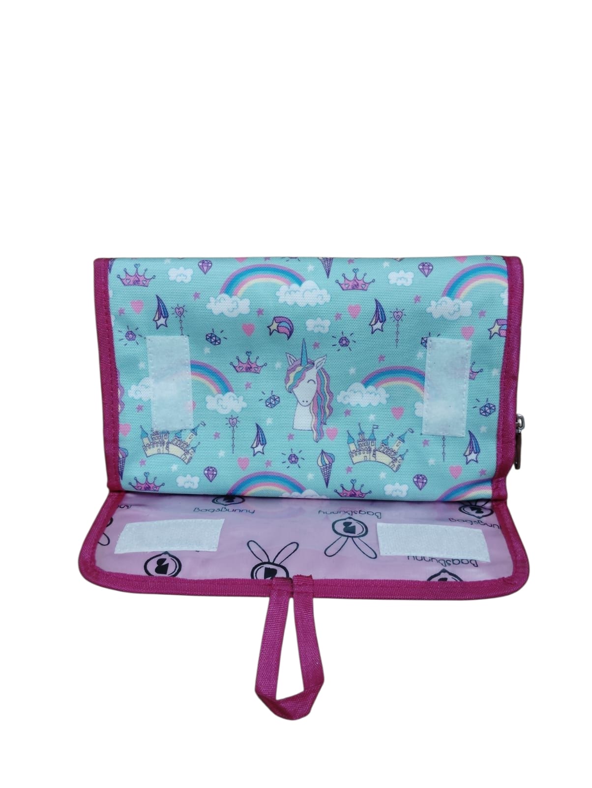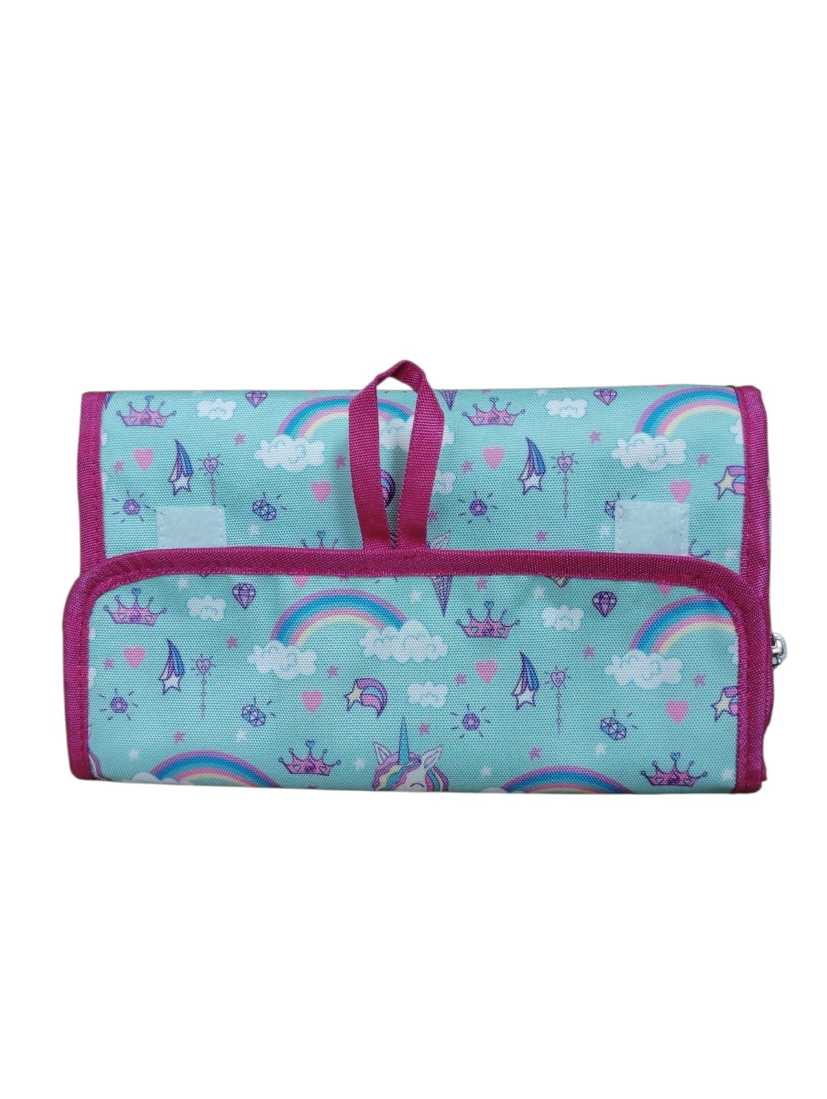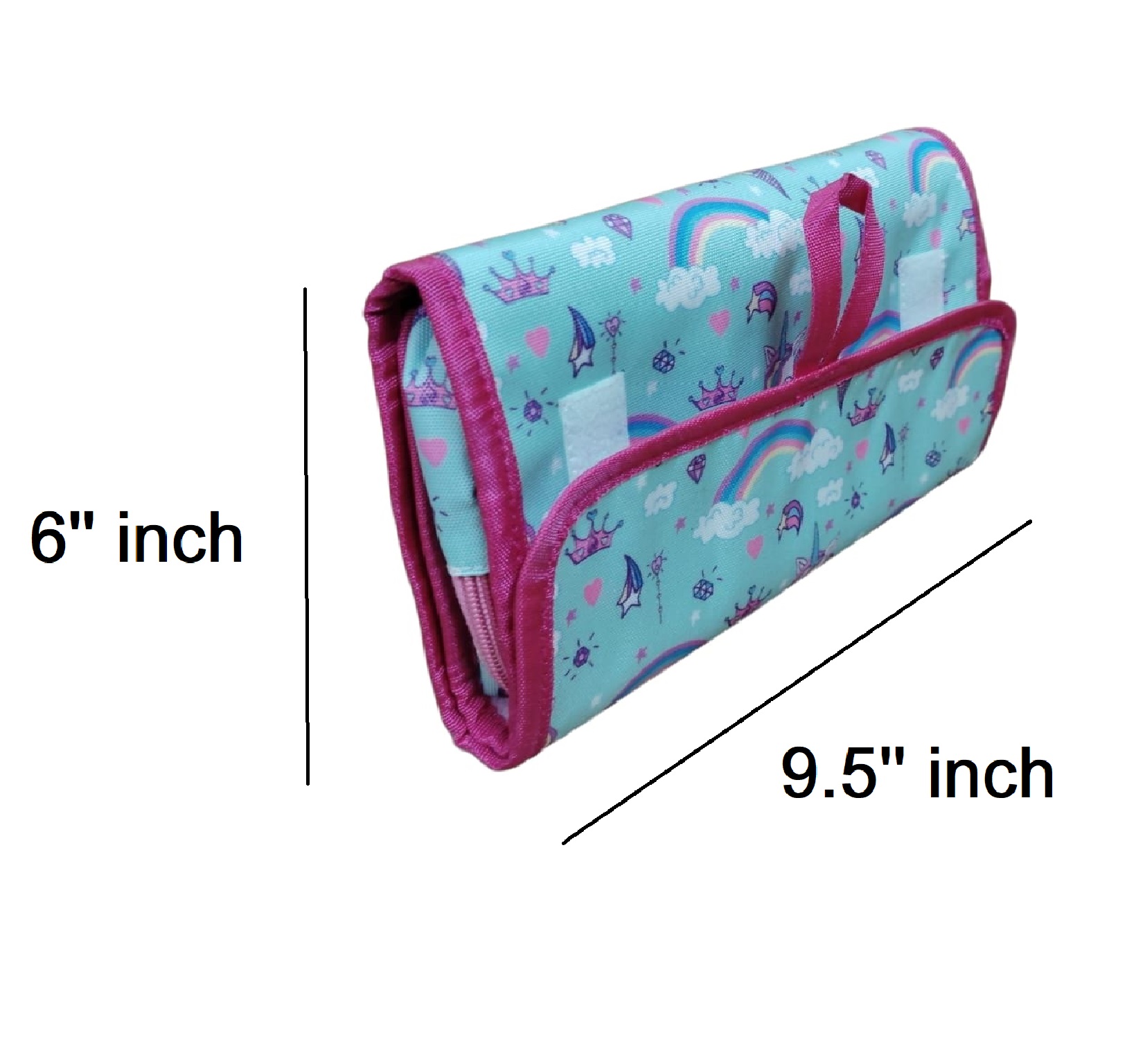 Cute and compact foldable toiletry bag with a fun prints, water-resistant fabric, secure Velcro closure, and easy-to-carry — perfect for kids’ travel or daily use.