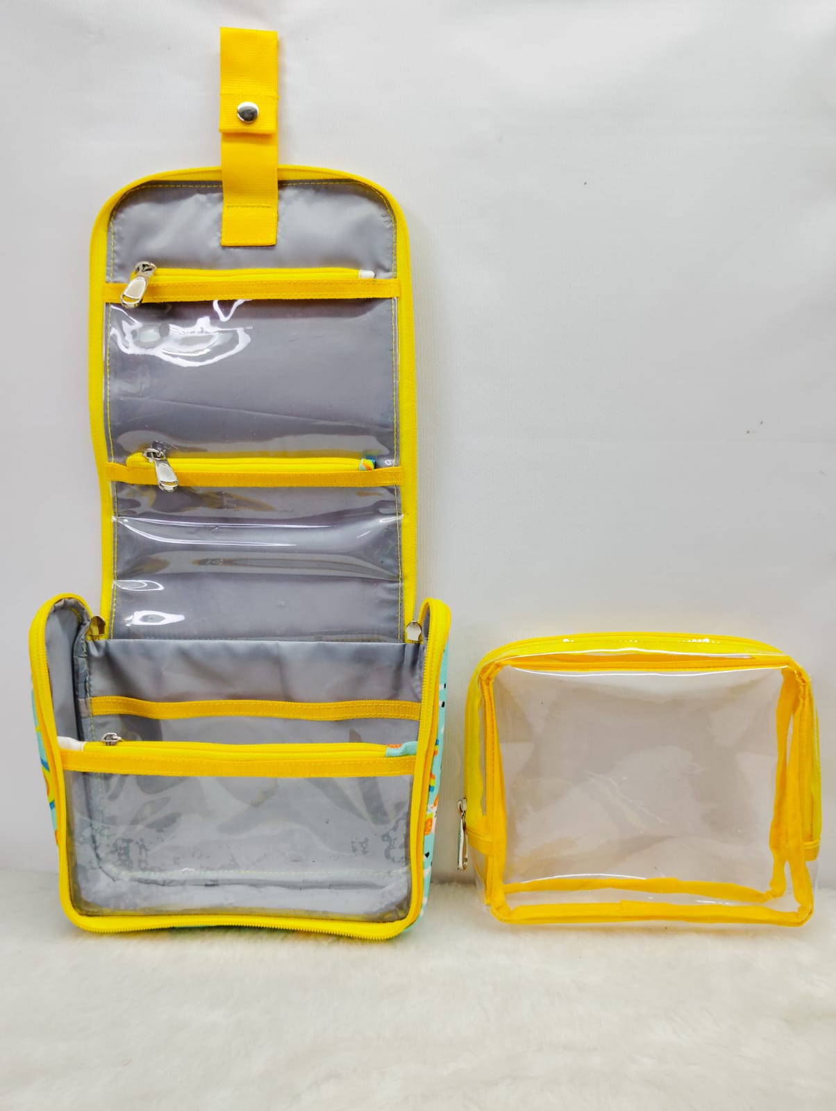 Folding Travel & Toiletry Organizer – Keep all your essentials neatly packed with multiple clear zip pockets and a handy strap. Comes with a removable pouch for quick trips and easy access. Perfect for travel, cosmetics, and everyday use.