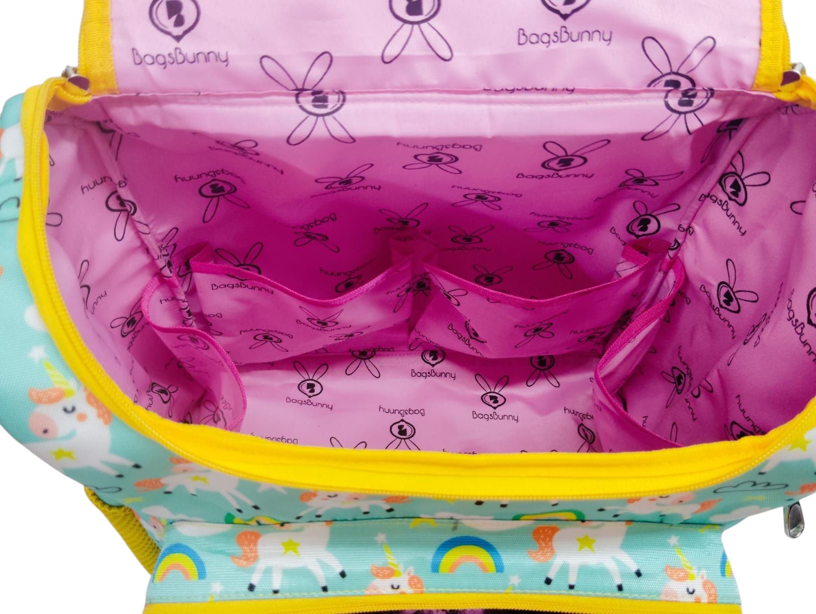 Spacious and adorable diaper bag by Bags Bunny — designed to keep all your baby essentials organized. Multiple compartments, easy-access front pocket, and cheerful prints make it both practical and fun for everyday use.