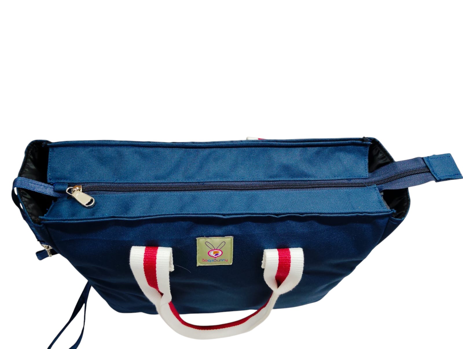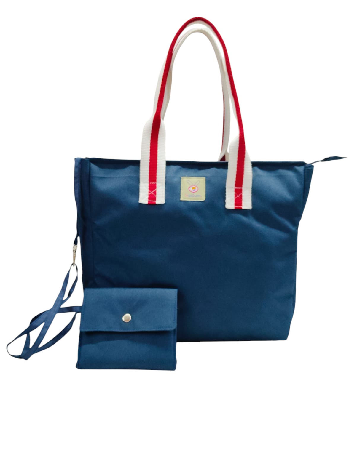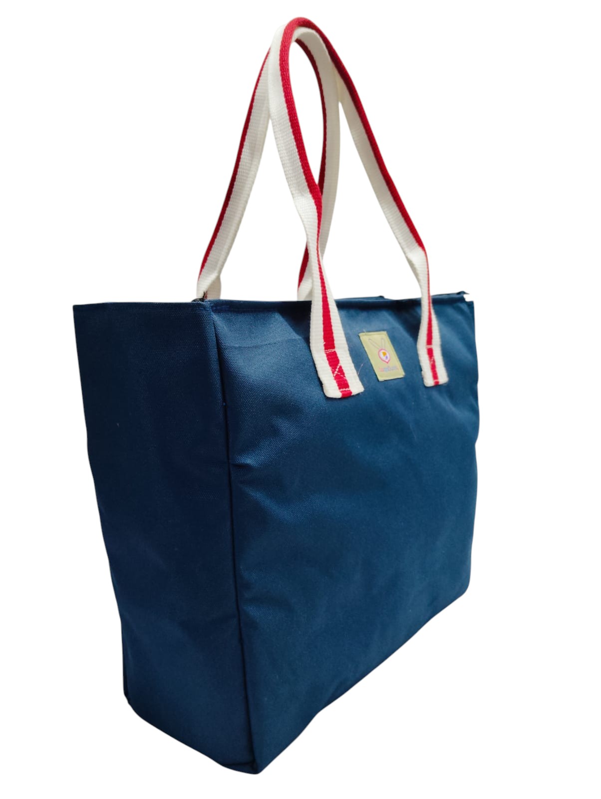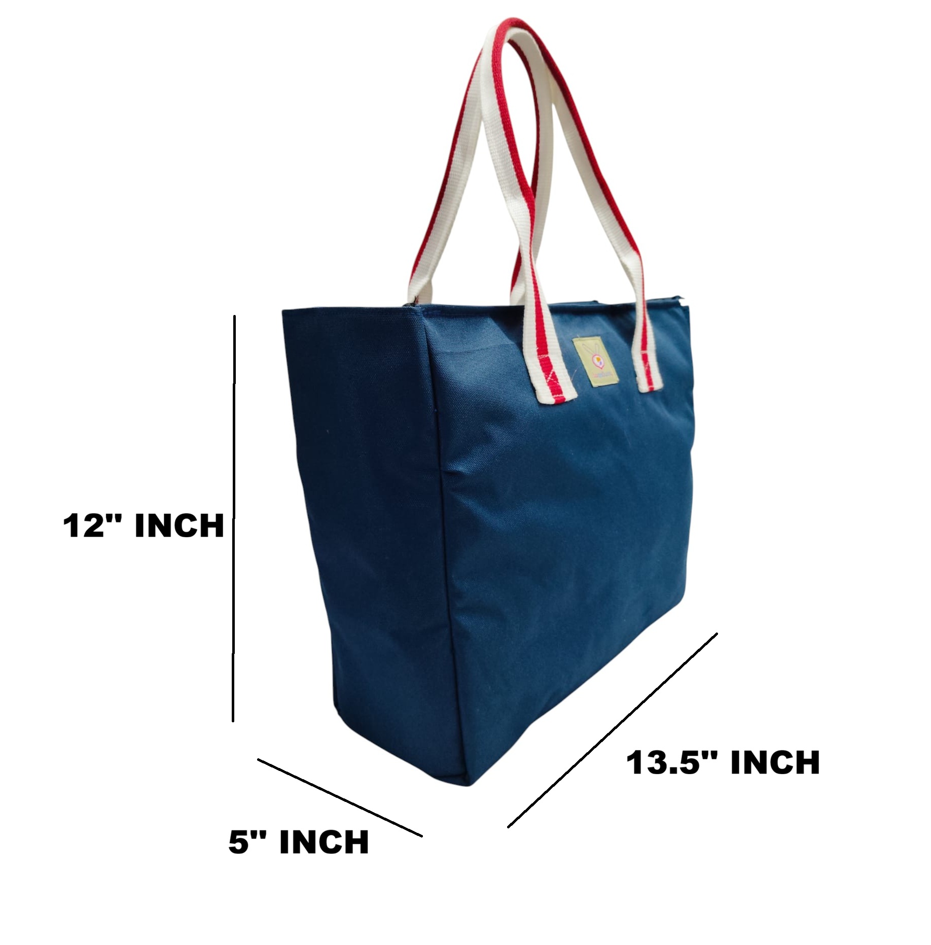A smart, spacious tote crafted in durable fabric with bold red-white striped handles for a stylish pop. Lightweight yet sturdy, it comfortably fits your daily essentials — from work files to travel must-haves. The secure zip closure keeps everything safe while the structured shape makes it perfect for office, café runs, or weekend outings.