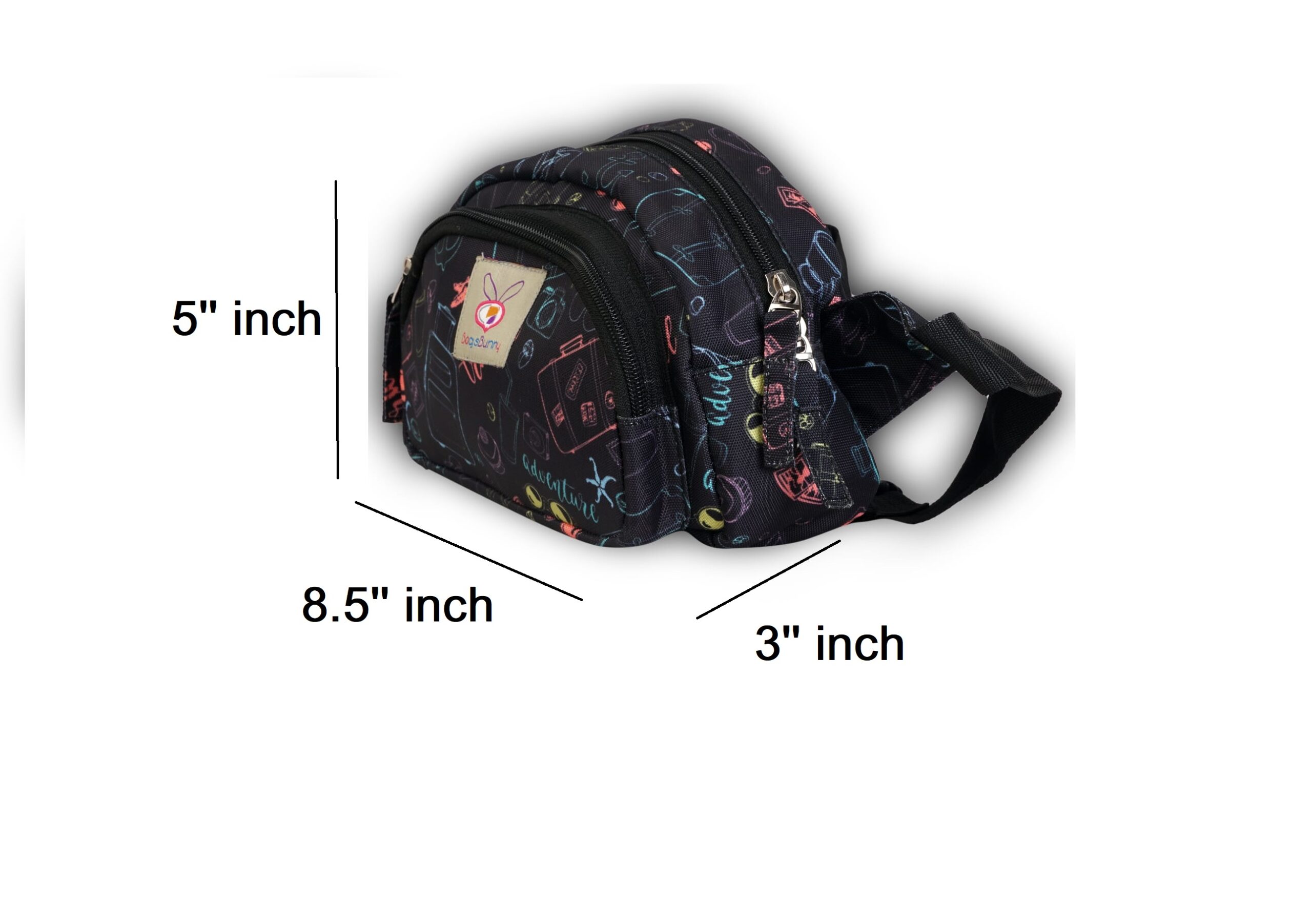 A cute and comfy waist pouch with two spacious pockets – perfect for tiny treasures, snacks, or pocket money. Adjustable strap for a snug fit, fun prints for big smiles. Whether it’s a playdate, park, or travel day – they’re ready to zip, go, and explore!