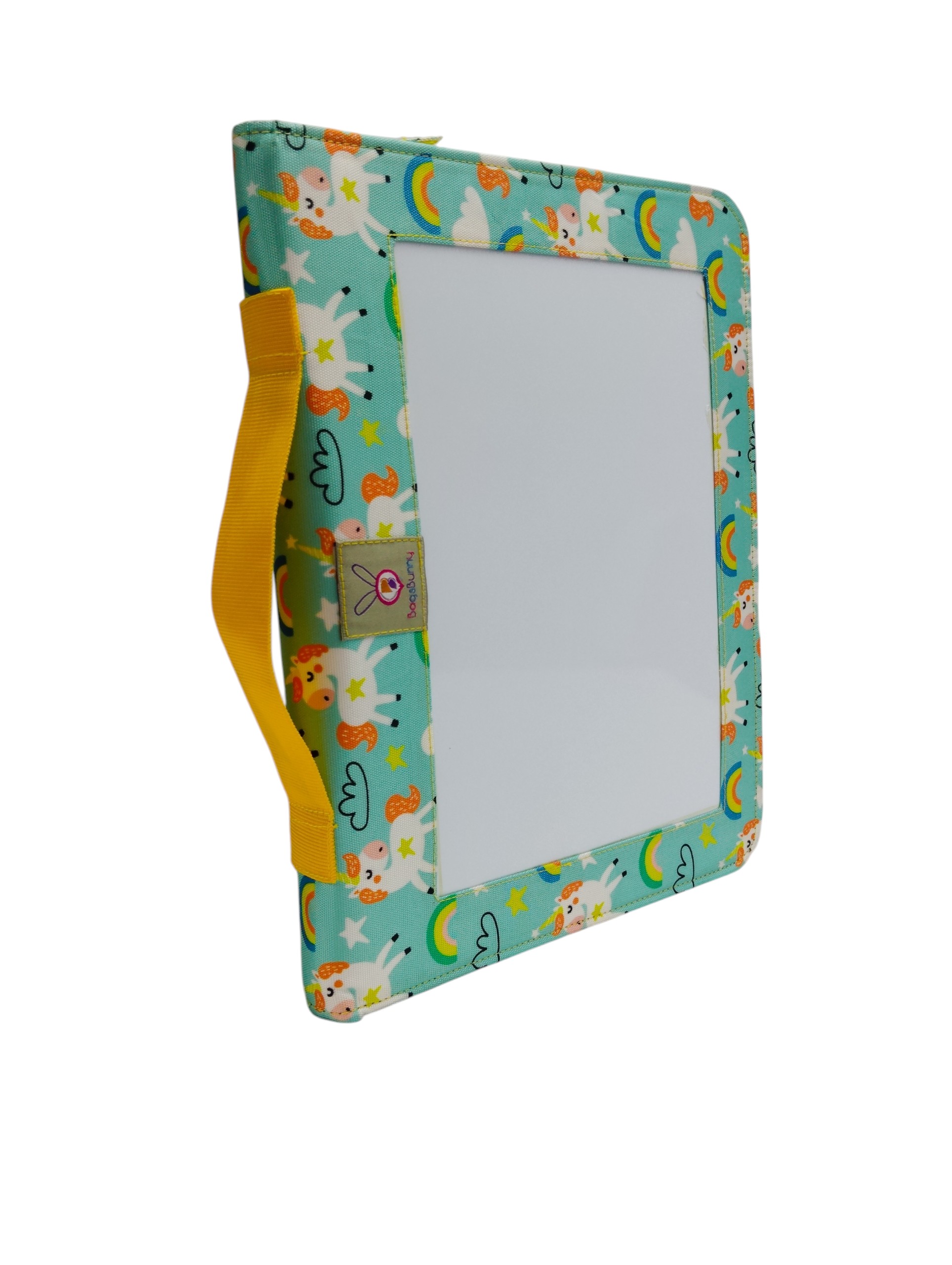 A fun, functional, and travel-friendly organizer for kids! Comes with a magnetic whiteboard—perfect for doodling or playing with magnetic toys. Inside, you’ll find a zipper pocket to store stationery, books, or papers, along with a file section to keep everything in place. Available in adorable prints, it’s great for gifting, travel, or everyday use!